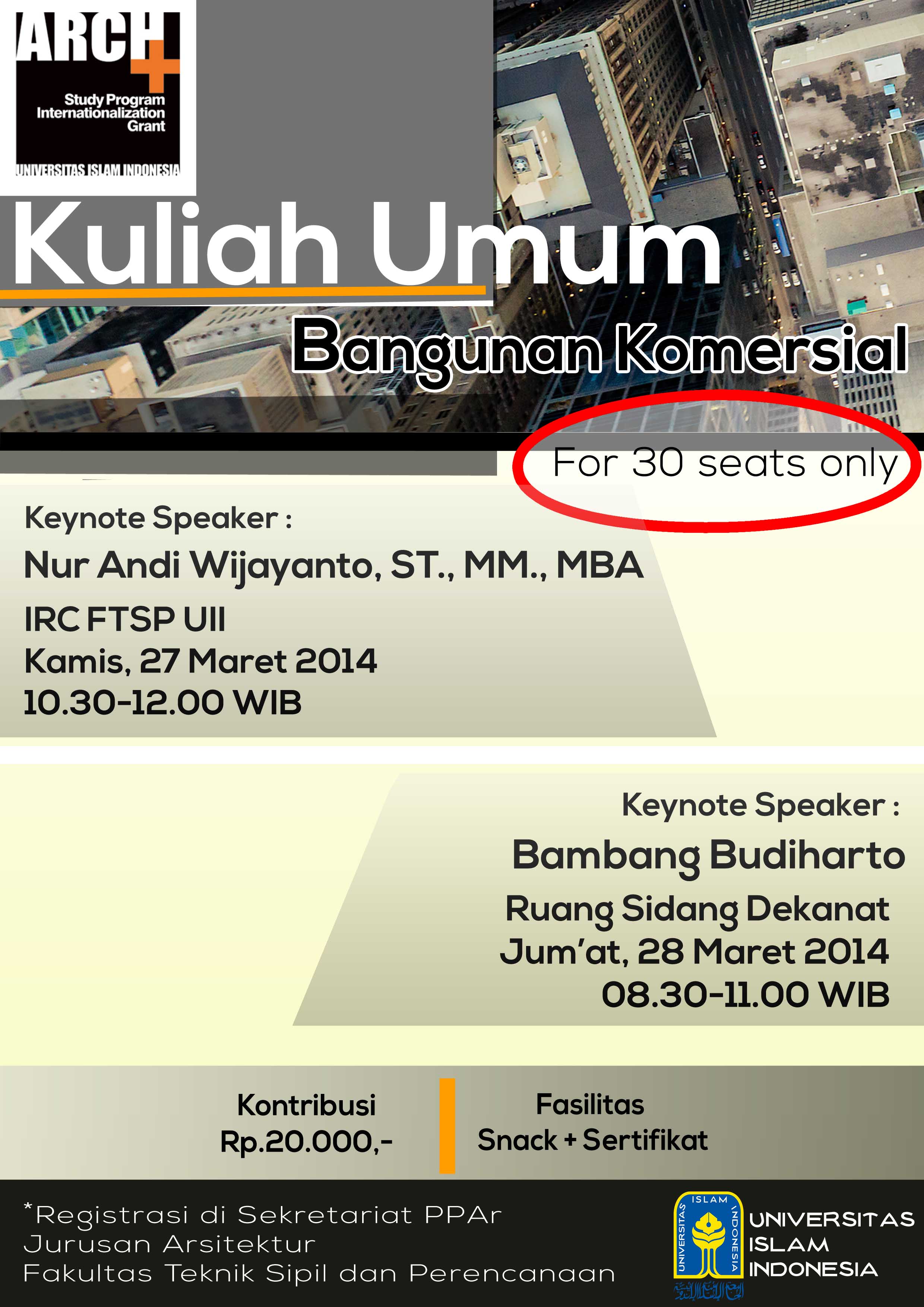 -Bambang Budiharto, Jum’at, 28 Maret 2014, Pukul 08.30-11.00, Auditorium lantai 3 FTSP UII